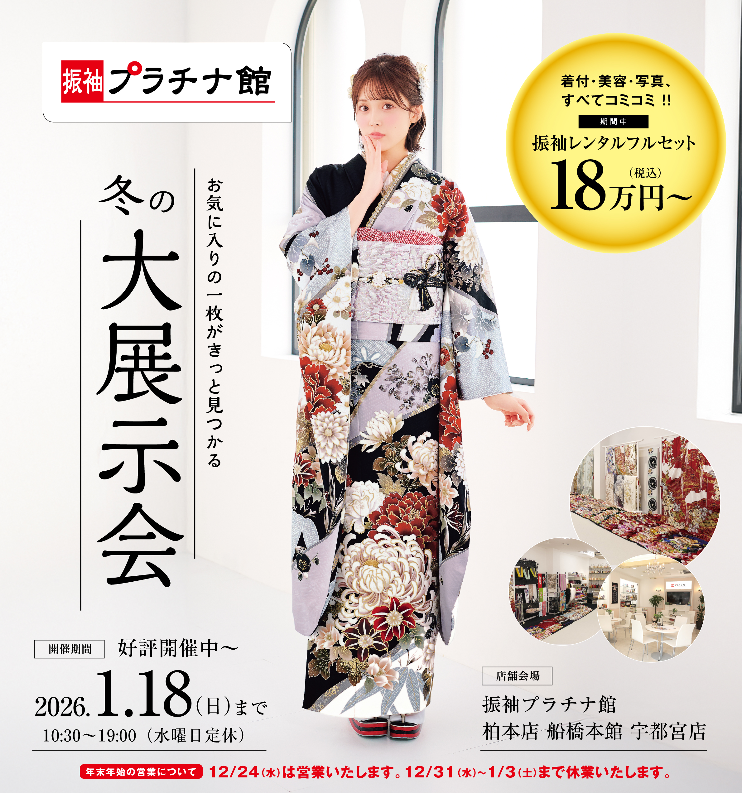 振袖・長襦袢・袋帯・帯締め・帯揚げ・伊達衿・ショール・肌着・足袋・和装小物(腰紐・伊達締め・衿芯・三重紐・帯枕)がセットに含まれます。 お客様にご準備いただくものは、補整に使うタオルと髪飾りです。