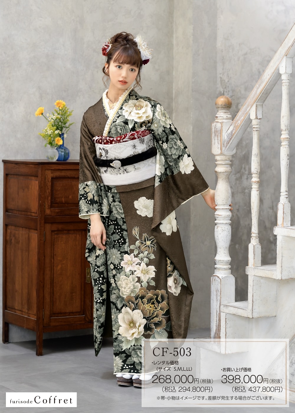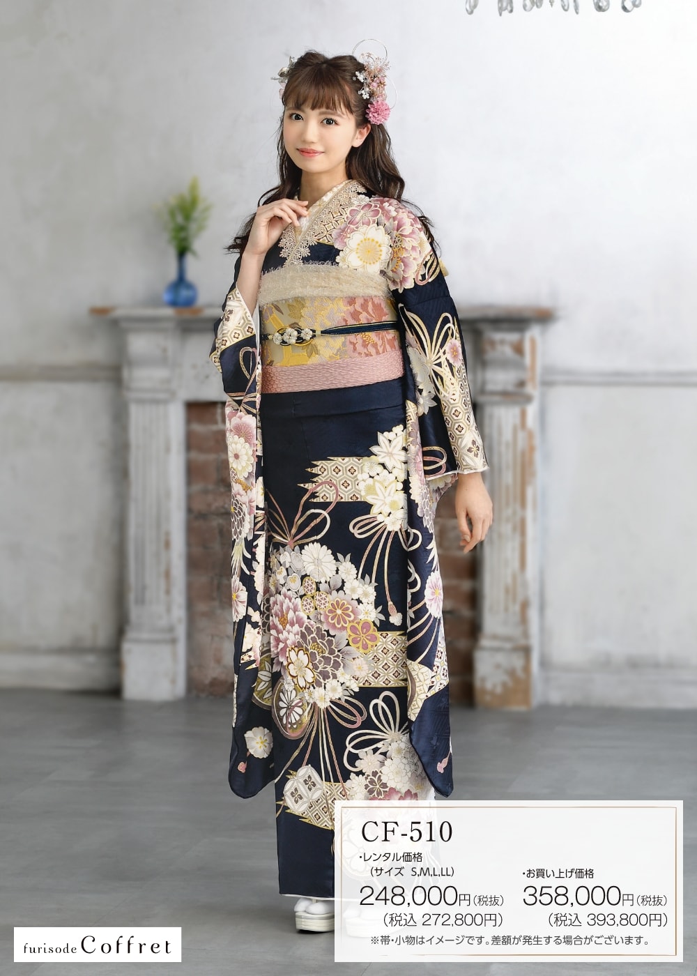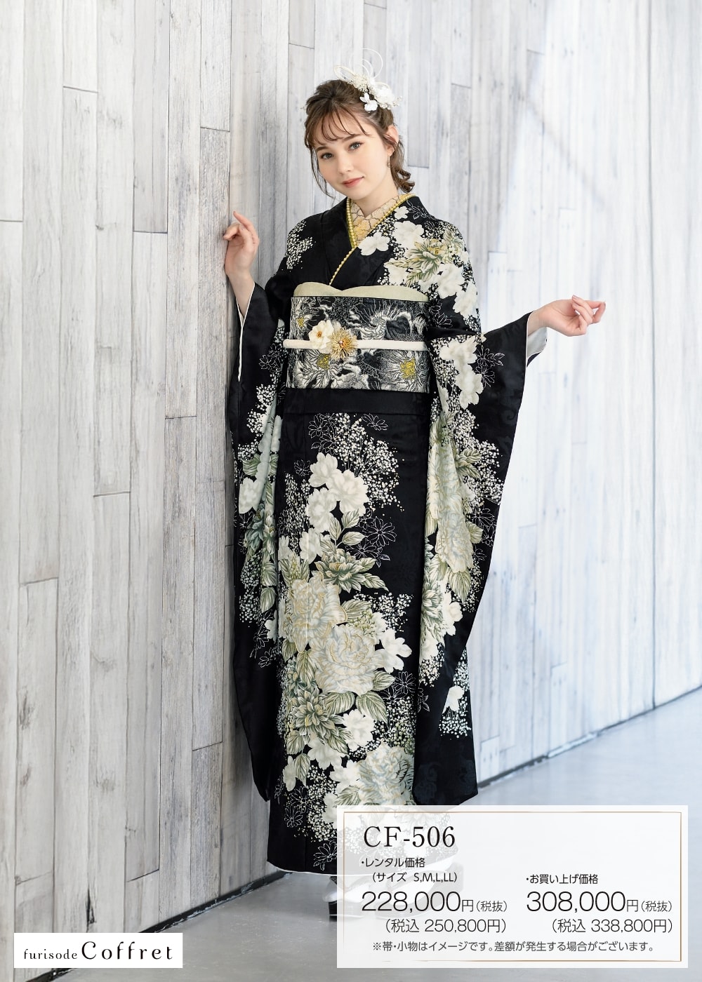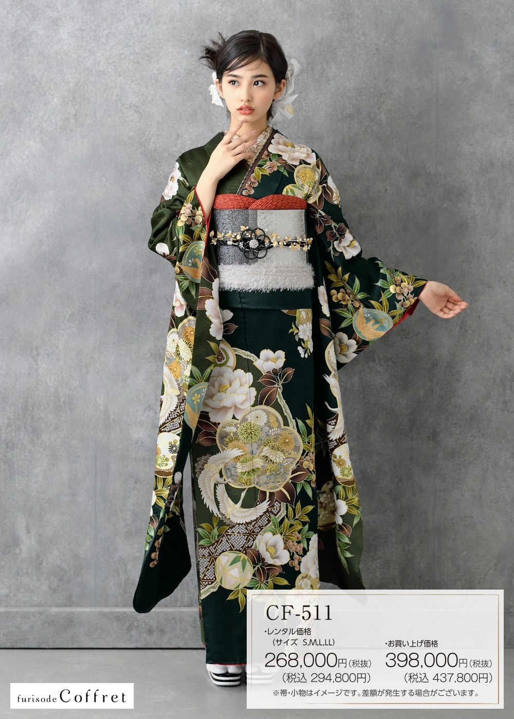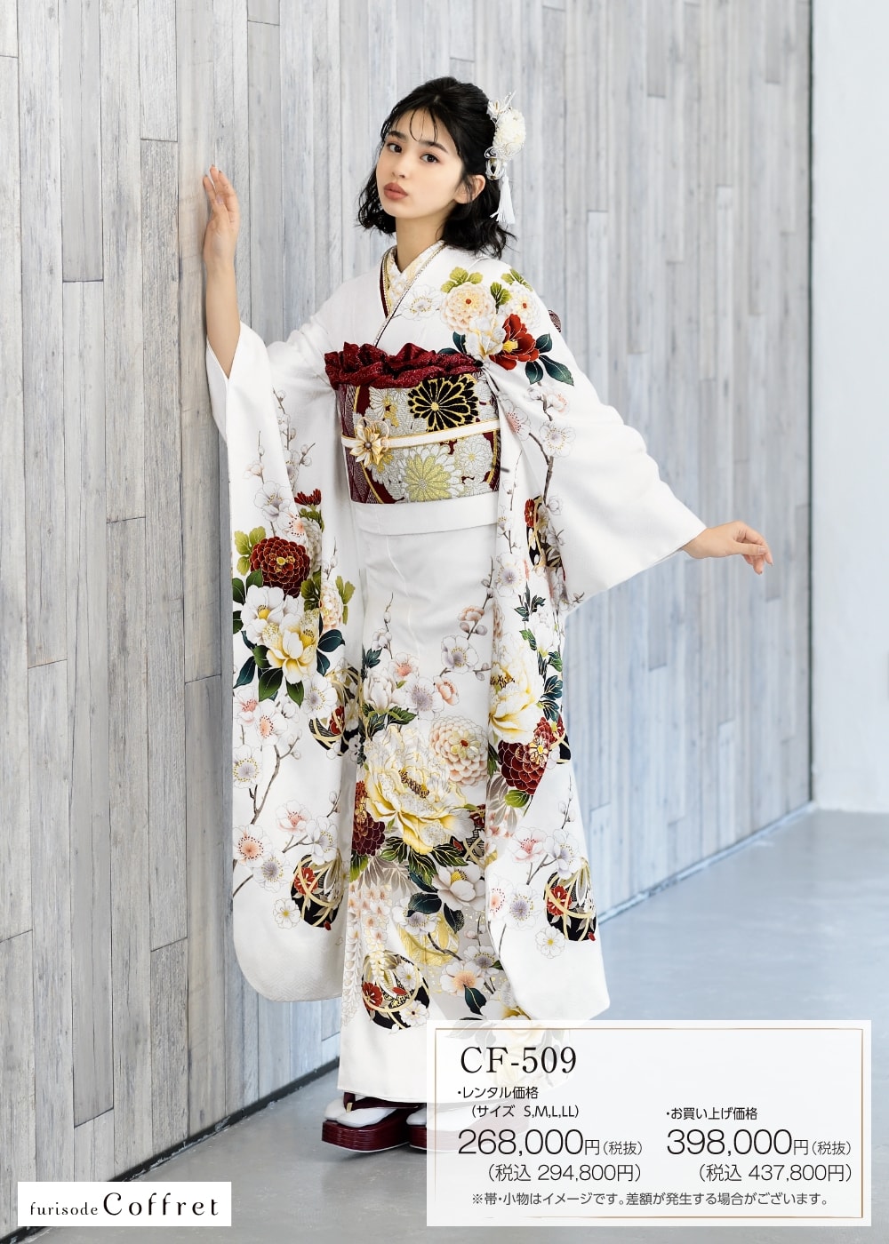 振袖・長襦袢・袋帯・帯締め・帯揚げ・伊達衿・ショール・肌着・足袋・和装小物(腰紐・伊達締め・衿芯・三重紐・帯枕)がセットに含まれます。 お客様にご準備いただくものは、補整に使うタオルと髪飾りです。